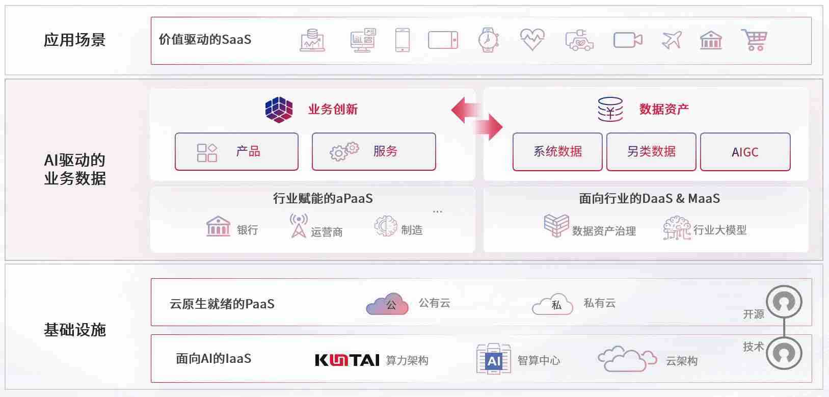 数字时代,,围绕企业数字化转型的关键要素,,k豆钱包数码开创性的提出数云融合战略和技术体系框架,,,,着力在云原生、、、、数字原生、、、AI原生和信创产业上架构产品和服务能力,,为处在不同数字化转型阶段的快消零售、、、、汽车、、金融、、、、医疗、、、、政企、、教育、、、运营商等行业客户提供泛在的敏捷IT能力和融合的数据驱动能力,,构建跨界融合创新的数字业务场景和新业务模式,,助力企业级客户建立面向未来的核心能力和竞争优势,,,全面推动社会的数字化、、、智能化转型升级。。。。